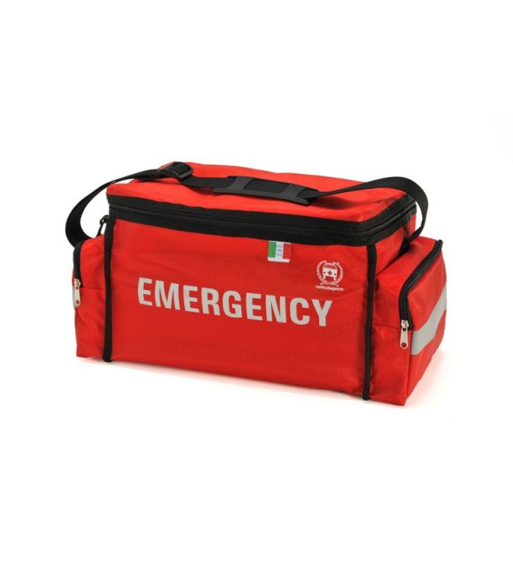 Kit emergenza balneare – Borsa in nylon ad alta resistenza, impermeabile, chiusura zip, cintura regolabile, tascone centrale più tasche laterali.