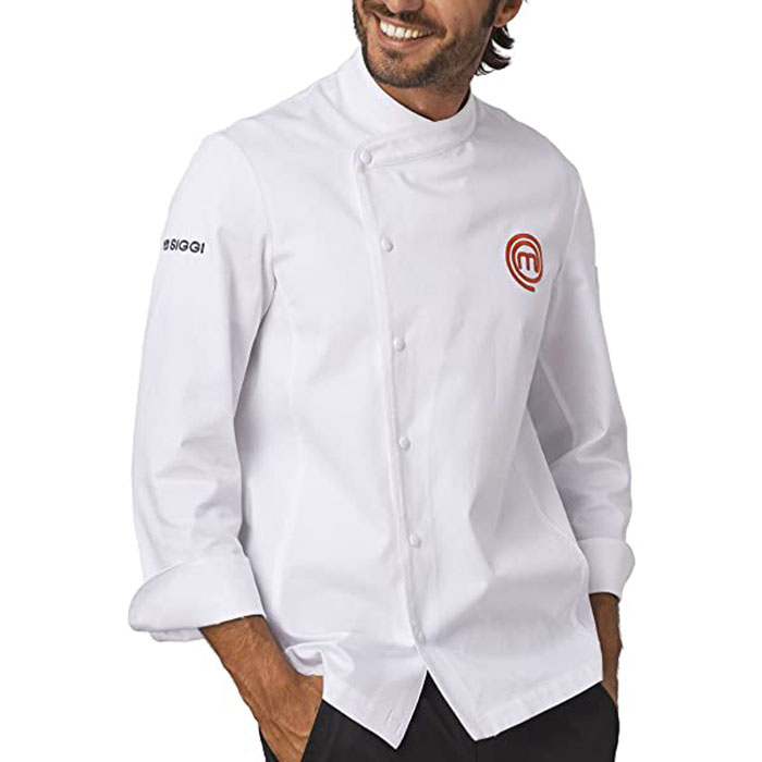 Giacca con apertura frontale con bottoni a pressione. Logo Masterchef. Materiale: Cotone, 190 gr. Giacca in panno