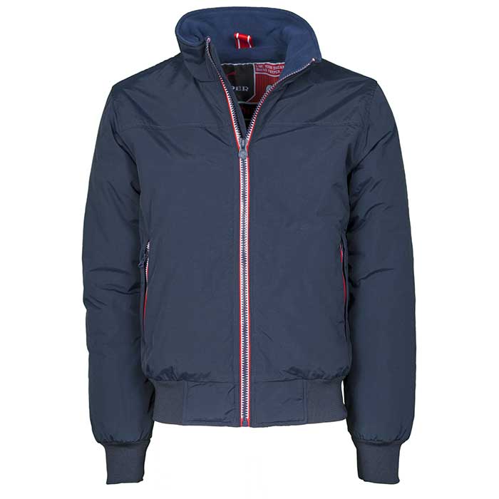 Giubbino da uomo, zip in contrasto, in plastica con cursore in metallo, con polsini e vita in rib elasticizzato, due tasche esterne con zip coperta. Interno: imbottito, micropile nel colletto e schiena, una tasca con cerniera porta smartphone con predisposizone per cavo, zip al petto e schiena per agevolare stampe e ricami. Composizione : 100% NYLON. Peso: 105 GR/MQ