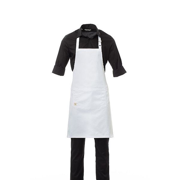 Grembiule unisex, multifunzione, con pettorina regolabile con fibbia, realizzato in twill di cotone e Lycra® T400®, con ottime proprietà elastiche e traspiranti. Presenta una tasca centrale con scomparti e un passante porta canovaccio. Misure: 80x83cm.