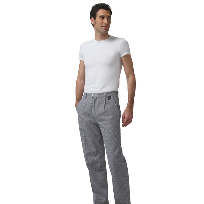 Pantalone cuoco classico a quadretti bianco nero 100% cotone drill irrestringibile 245 gr/mq.