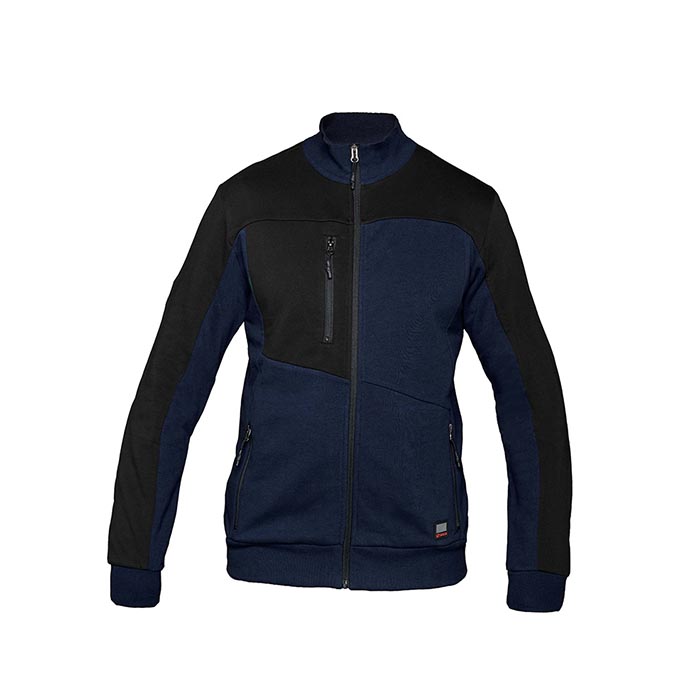 80% cotone 20% poliestere – 280 gr/mq – Chiusura con zip rovesciata – Collo, polsi e fondo capo in costina – Fettuccia para-sudore interno collo – Tiretti zip gommati
