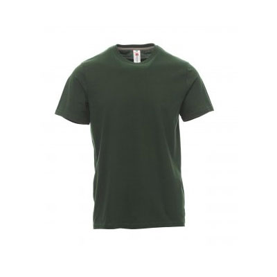 T-shirt da uomo girocollo manica corta, colletto in costina misto spandex da 1.5 cm con cucitura ribattuta sul davanti, nastro di rinforzo da spalla a spalla in colore a contrasto visibile nel colletto, cuciture stretch, struttura tubolare (colore mimetico con cucitura laterale)