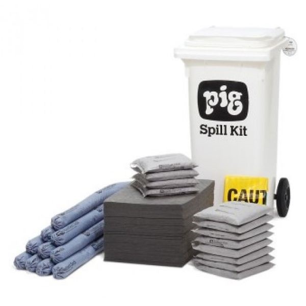 PRODUTTORE NEWPIG: Una gamma di prodotti assorbenti contenitivi per gestire sversamenti non aggressivi. Permette un’eccellente mobilità sia all’interno che all’esterno dei locali, supera anche gradini e curve; si può spostare sulle rotelle direttamente fino al luogo dello sversamento, struttura interamente realizzata in polietilene. Il Kit contiene : 100 – Tamponi Universali (MAT251) , 10 – Manicotti assorbenti BLUE (4048) , 12 – Cuscini Assorbenti (PIL204) , 5 – Sacchi di smaltimento temporaneo (BAGE205-L) , 2 – Etichette antimanomissione (LBL100) , 1 – Manuale di informazione sugli interventi antisversamenti (1611SKFOLDER) , 1 – Contenitore da 120 litri (BOXE-01-WH-PIG)