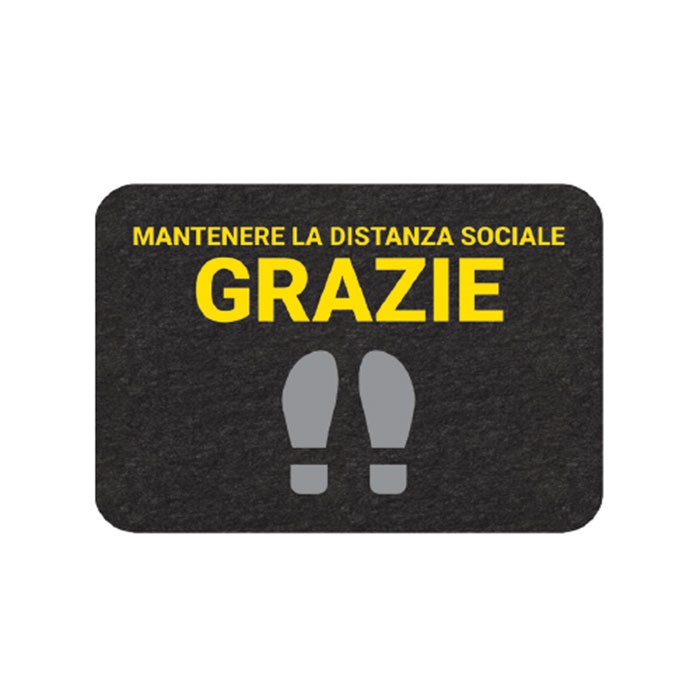 TAPPETINI CON MESSAGGIO DI DISTANZIAMENTO – TUTTI I TAPPETI HANNO UN FONDO ADESIVO. Perfetto per segnalare e gestire chiaramente la distanza sociale e le code nei vostri locali. Dimensioni cm 61 x 89 MESSAGGIO STAMPATO: MANTENERE LA DISTANZA SOCIALE GRAZIE