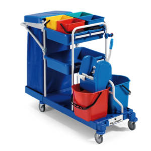 carrello “alpha 4103” composto da base grande con ruote ø 100 mm, montante asimmetrico con rinforzo, portasacco lt. 120, vaschetta, 2 ganci portamanico e 2 ganci portapaletta, strizzatore regular, 2 secchi lt. 15, portastrizzatore, 2 secchi lt. 4 e set tappi a “t” chiusura montanti. 92x68x111. accessori a richiesta coperchio per portasacco e sacco in tela plastificata.