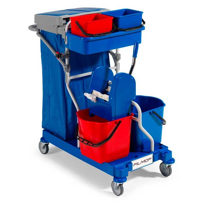 CONFORME AI CAM IN AMBIENTE CIVILE E SANITARIO. Carrello di raccolta più lavaggio, Ideale per ambienti dove è necessario l’occorrente per le operazioni di spolvero, raccolta rifiuti, lavaggio pavimenti e superfici, tutto in un carrello. Realizzato in conformità alla norma UNI EN ISO 14067:2018, e in parte con componenti in plastica certificati PSV – Plastica Seconda Vita. Portasacco da 120 lt con maniglia; completo di tendisacco e rinforzi. Secchi da 6 lt diversificati nel colore per l’eventuale differenziazione dei prodotti chimici e due secchi da 15 lt. Strizzatore ideale per sistemi lavaggio con mop e frange Speedy.