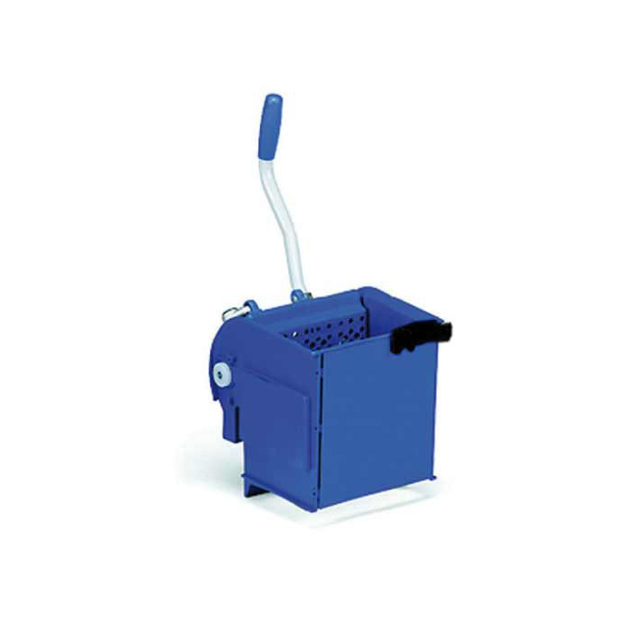 Strizzatore a libro in plastica blu con bandinella paraspruzzi.