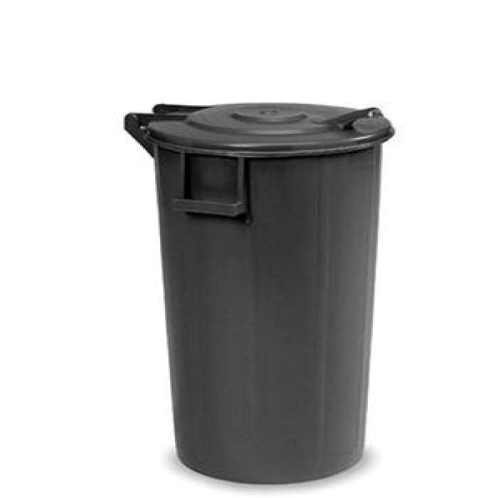 Bidone per rifiuti con coperchio a cerniera capacità 80 lt. Diametro 45 x altezza 70 cm. Prodotta anche da 60 e 100 lt.