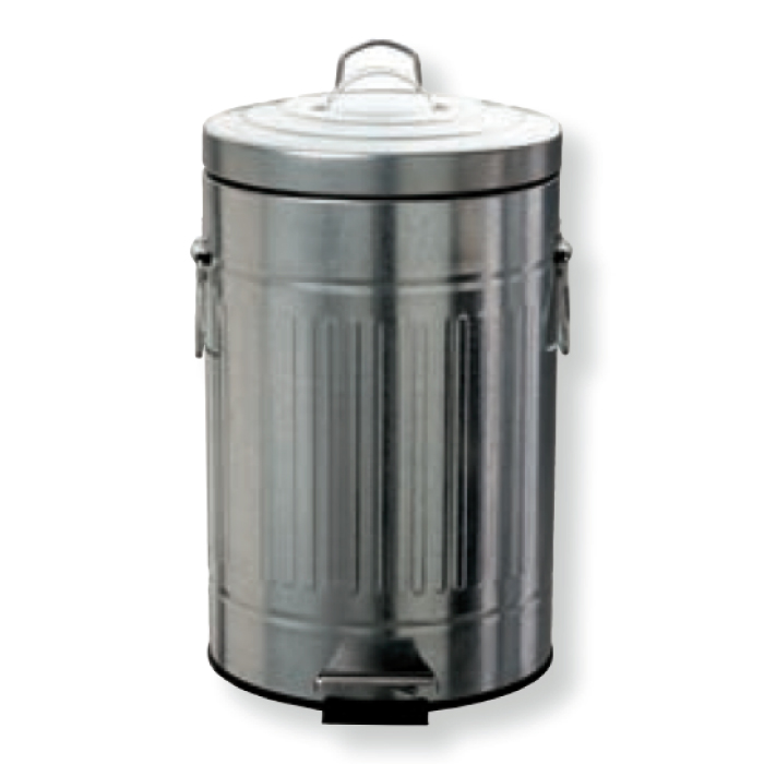 Pattumiera modello Retrò in acciaio galvanizzato con coperchio a pedale. Maniglia per facilitare lo svuotamento. Secchio interno in plastica con maniglia