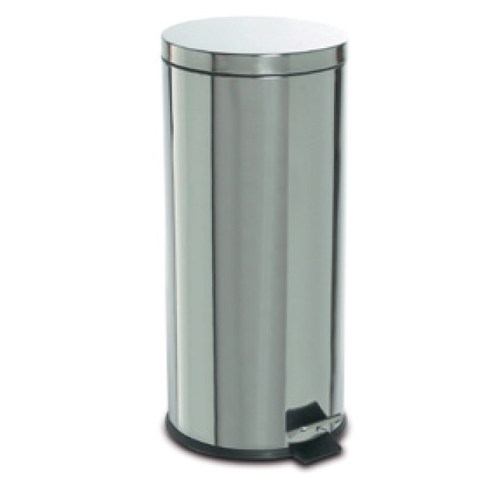 Pattumiera in acciaio inox con coperchio a pedale. Capacità 30 lt. Diametro 29,2 altezza 64 cm.