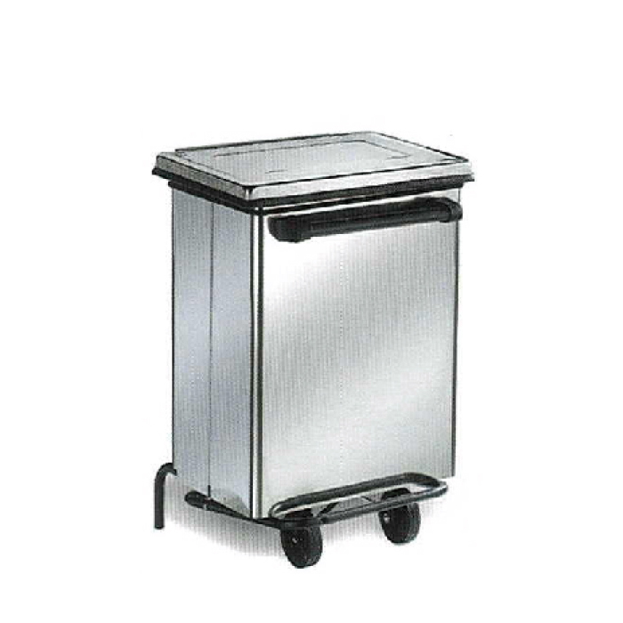 Pattumiera acciaio inox lucido da lt. 70 con coperchio a pedale. Carenatura apribile per una più facile e comoda estrazione del sacco per rifiuti. Ideale per ambulatori e dietro i banchi alimentari e dei bar per il rispetto delle norme HACCP. . Dimensioni L 47 P 43 H 73 cm. Prodotta anche in metallo laccato bianco.