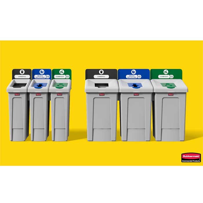 CONTENITORE GRIGIO DA 87LT + BASE + CONNETTORE + COPERCHIO + COPERCHIO A COLORE + TABELLORE A COLORE. Una soluzione per il riciclo flessibile e funzionale dall’aspetto elegante. Le aperture del coperchio intuitive consentono ai clienti e allo staff di riciclare in modo più efficace. Il codice colori e le etichette consentono di individuare più facilmente i bidoni per una corretta differenziazione. Facile installazione: i componenti si agganciano con una semplice pressione. Gli inserti incernierati del coperchio sono progettati per adattarsi a qualsiasi dimensione. DIM: 54,61×30,48×87 cm Peso: 4,7 kg COLORI DISPONIBILI: VERDE-GIALLO-ROSSO-BLU-NERO-MARRONE