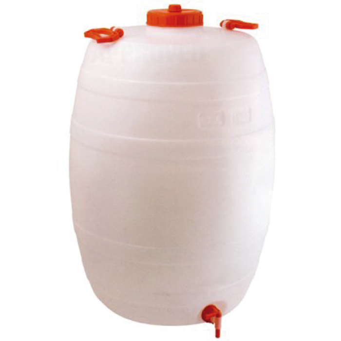 Fustino a botticella da 50 lt con rubinetto e maniglie. Dimensioni 56×39 cm.
