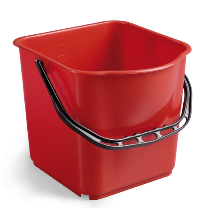 Secchio 25lt in plastica rosso con manico in plastica.