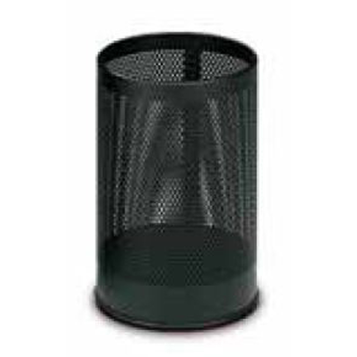 Gettacarte in metallo forato laccato nero. Disponibili anche bianco, grigio o rosso. Diametro 24 altezza 40 cm. Peso 1,5 kg.