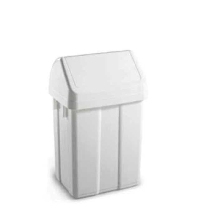 PATTY contenitore gettacarta in plastica da lt.25 con coperchio basculante BIANCO. Indicato per la raccolta dei rifiuti in ambienti quali: alberghi, scuole, ospedali, ristorazione, mense e comunità in genere. Dimensioni 30x25x52 cm.
