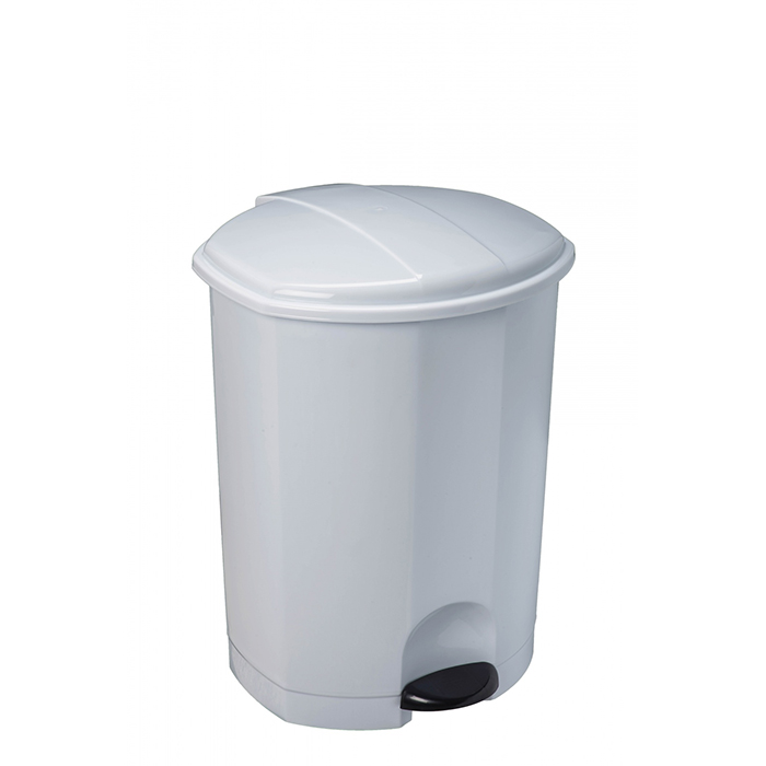 Pattumiera a pedale in polipropilene ad alta densità bianco. Secchio interno in plastica con maniglia. Dimensioni 350x270x270 mm.