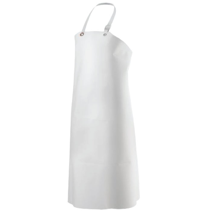 Grembiule in nitrile doppiamente spalmato. Cinturino regolabile intorno al collo, chiusura nella parte posteriore con gancio in acciaio e fascia elastica. Antiabrasione. Antigrasso. Temperatura di utilizzo fino a 80°C Idoneo per contatto alimentare. Dimensione 90×115 cm. Peso 460 gr/mq.