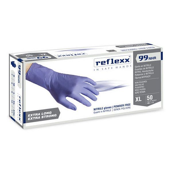 GUANTI HI RISK IN NITRILE REFLEX SENZA POLVERE gr. 8,8 (M) ad alta resistenza. Monouso, ambidestri. 100% Latex Free. Alto spessore per una resistenza meccanica superiore e lunghezza maggiorata. Finitura micro ruvida per aumentare la presa e la sensibilità tattile. DPI Cat. 3 di rischio anche per protezione da agenti chimici e microrganismi (Reg EU 2016/425). EN ISO 374-1:2016 / TYPE A – EN ISO 374-5:2016 / VIRUS – DISPOSITIVO MEDICO in ambito ospedaliero e dentale (AQL 1,5) Prezzo per confezione da 50 guanti.