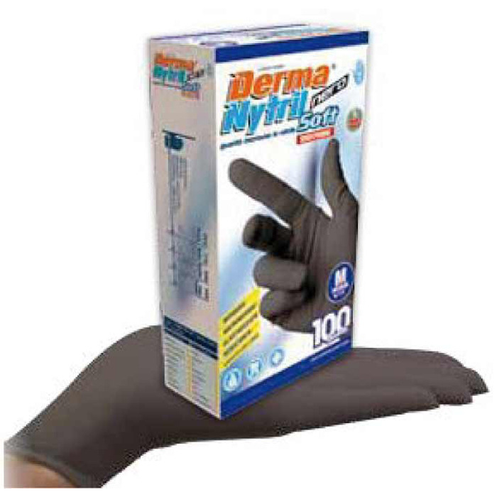 Guanto di protezione monouso ambidestro in nitrile. La particolare formulazione conferisce al guanto Dermanitril Soft caratteristiche di eccezionale elasticità e sensibilità, paragonabili a quelle dei normali guanti in lattice. Senza Polvere. Polsino rinforzato salvastrappo. Privo di lattice di gomma naturale elimina il rischio di reazioni allergiche correlate alla presenza di proteine del lattice. Buona resistenza ad aggressivi chimici, idrocarburi, solventi, olii e grassi in generale, detergenti e detersivi concentrati. Idoneità al contatto con alimenti. DPI III CAT