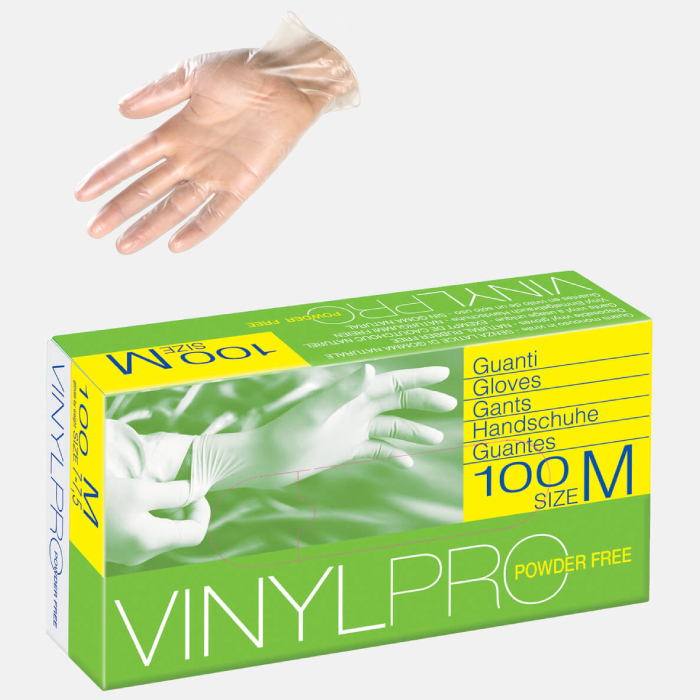 Guanto sintetico monouso in polivinilcloruro, ambidestro con bordino, a finitura interna opaca ed esterna liscia, senza polvere lubrificante all’interno. Guanto monouso di disegno semplice da utilizzare per le attività rientranti nella classe I di rischio – Rischi minori (Direttiva 89/686/CEE).