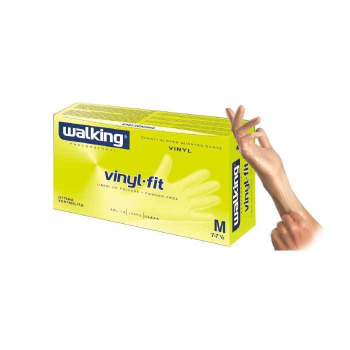 Guanti monouso, vinile, senza polvere, lisci, trasparente, ambidestri, con bordino, aql 1.5. Anallergico. Senza polvere, superficie liscia. Peso 3,9 gr (M), Lunghezza 24 cm. DPI cat I – Solo per rischi minimi. Dispositivo Medico di classe I. Ai fini di un corretto utilizzo si rimanda ad un’attenta lettura della scheda informativa del prodotto. Prodotto idoneo al contatto con alimenti acidi, dal contenuto alcolico fino al 15%, alimenti secchi, frutta/ortaggi non pelati. Non idoneo al contatto con alimenti grassi-oleosi.