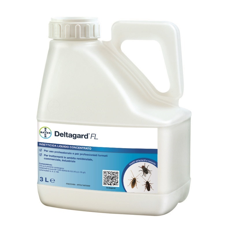 Insetticida in soluzione concentrata a base di piretroidi per trattamenti in ambito residenziale, commerciale e industriale incluse INDUSTRIE ALIMENTARI. Adatto ad usi mediante pompe a bassa pressione. Efficace sia contro insetti striscianti che mosche. Efficacia prolungata nel tempo. Non lascia tracce, macchie o aloni. Contro mosche nelle abitazioni civili, locali pubblici, ecc.: 1% pari a 50 ml in 5 L d’acqua per 100 mq; Contro insetti striscianti nelle abitazioni civili, locali pubblici, ecc.: in caso di infestazione forte 1% pari a 50 ml in 5 L d’acqua per 100 mq; in caso di infestazione lieve 0,5% pari a 25 ml in 5 L d’acqua per 100 mq;