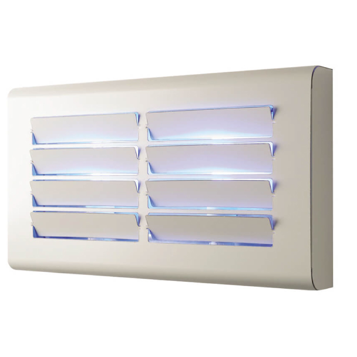 Trappola elettroluminosa da parete per insetti volanti idonea per una protezione di c.a 80 m2. Costruita in metallo verniciato, cattura gli insetti grazie ad un cartone collante posto dietro le 2 lampade UV. Ambienti d’impiego:luoghi pubblici, alberghi, bar, ristoranti, palestre, caserme, industrie in genere, industrie alimentari.