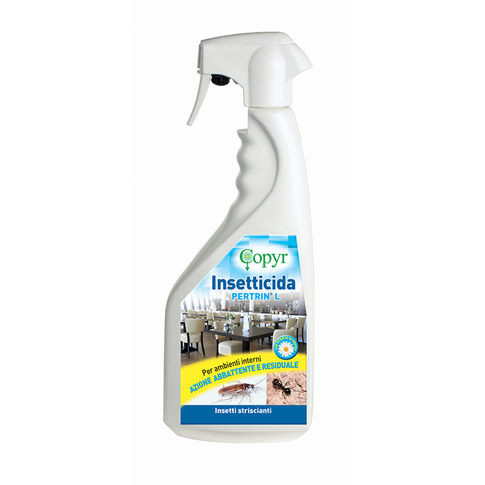 Insetticida pronto all’uso a base di permetrina ed estratto naturale di piretro dotato di rapida azione snidante, abbattente e lungamente residuale. Estremamente efficace contro una vasta gamma di insetti, scarafaggi, formiche, ragni, pesciolini, pulci ecc. P.M.C. n° 11502 Ministero della salute.
