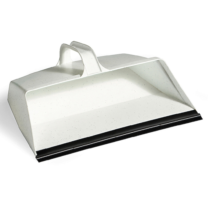 paletta in plastica bianca con impugnatura e con profilo in gomma.