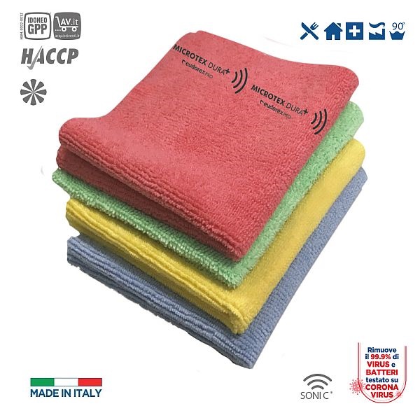 Nuova tecnologia di lavorazione con taglio a ultrasuoni. Il bordo tagliato con sistema “sonic” oltre a rendere il panno più leggero e maneggevole resiste di più ad usura e lavaggio rispetto al classico bordo cucito. Modi d’uso: UMIDO E BEN STRIZZATO per spolverare, sgrassare e decontaminare (anche in abbinamento a prodotto chimico). Codice: A602 Giallo/ A603 Blu/ A604 Rosso/ A605 Verde Dimensioni: 40×40 cm – 70% poliestere / 30% poliammide – Conf. 20 pz. / Cartone 10 conf.