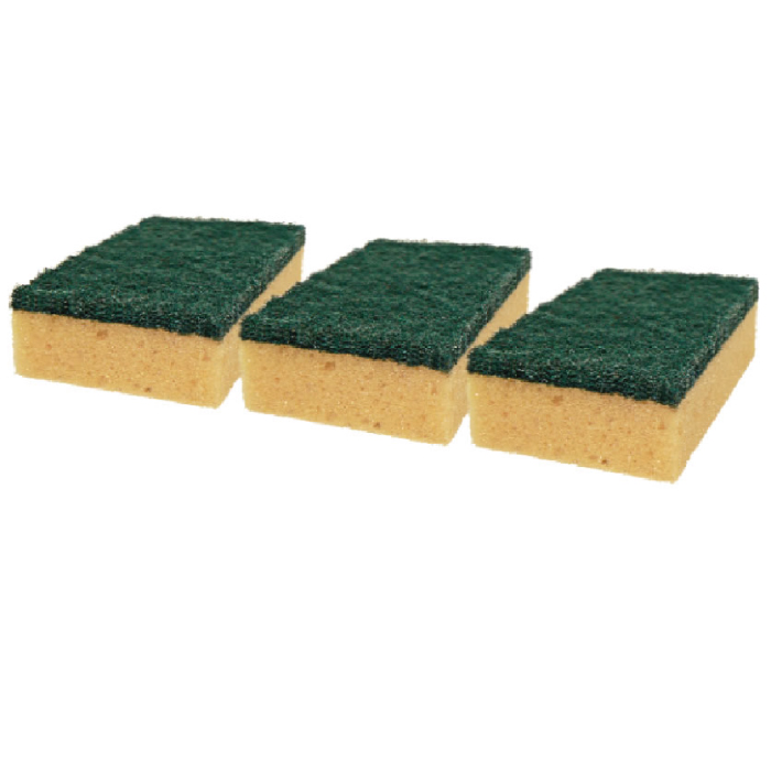 Confezione da 3 spugne + abrasivo verde, tris. cm. 10 x 7 x2 ,5 cad. Produttore arix. imballo da 45 tris. Prezzo per 1 conf da 3 spugne.
