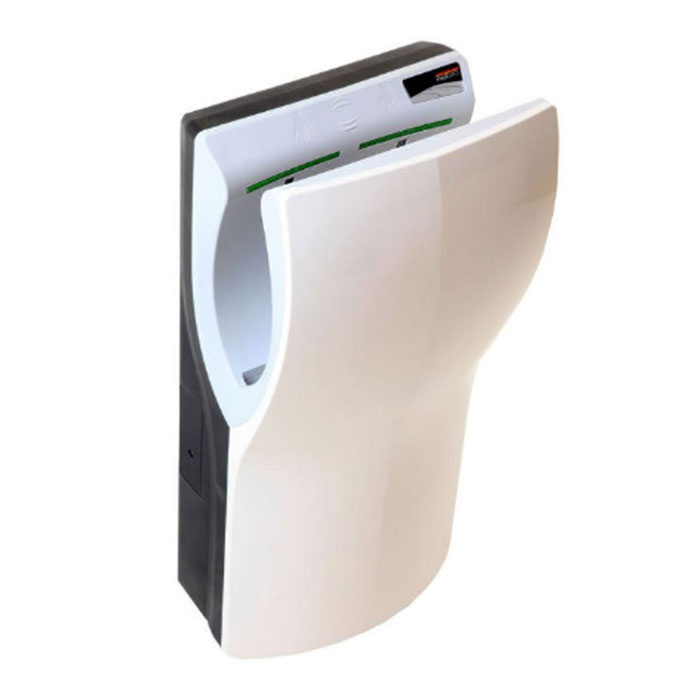 Aria calda a 35 gradi con velocità di 234/410 km/h per asciugature in 12 secondi ! Asciugatura basata sull’asportazione e rimozione delle singole gocce e particelle d’acqua. Risparmio energetico poichè privo di resistenza elettrica quindi 1.500 W contro 2.500 W. Motore a spazzole universale classe F ad alta velocità. Possibilità di regolare la potenza del motore e, di conseguenza, anche il consumo di elettricità.
