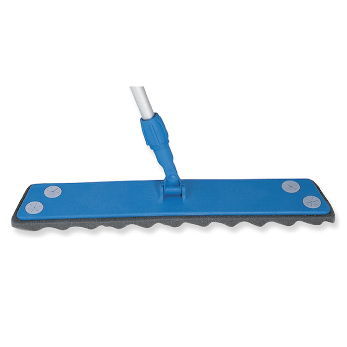 Attrezzo per panni impregnati con spugna, completo di manico in ferro cromato cm.140 in due pz, in confezione singola – cm.60. L’attrezzo si utilizza esclusivamente con i relativi panni impregnati per lo spolvero di tutti i tipi di pavimenti lisci (parquette, linoleum, marmo, gres, ecc)
