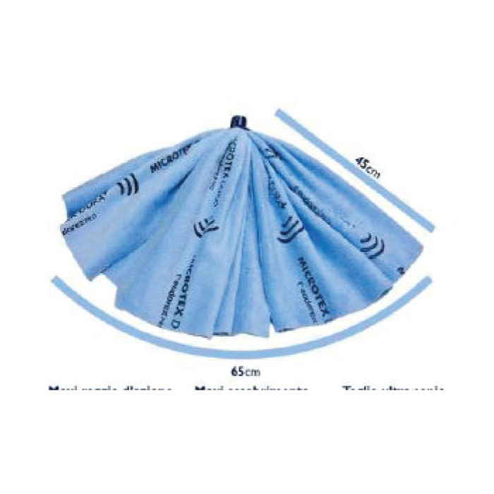 Mop, con attacco a vite, composto da 3 panni in microfibra da 40×70 cm.. Ideale per tutti i tipi di pavimenti lisci e lucidi. Ampio raggio di azione, elevata assorbenza, buon potere sgrassante, facile da strizzare. Colorer azzurro. Lavabile in lavatrice.