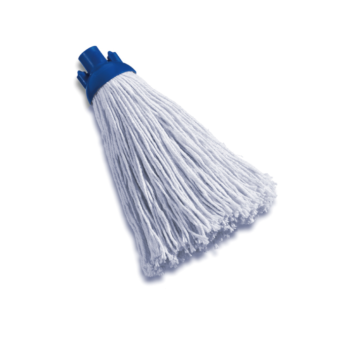 Mop ricambio in cotone filato grosso gr.220 con attacco filettatura standard in plastica blu a vite.